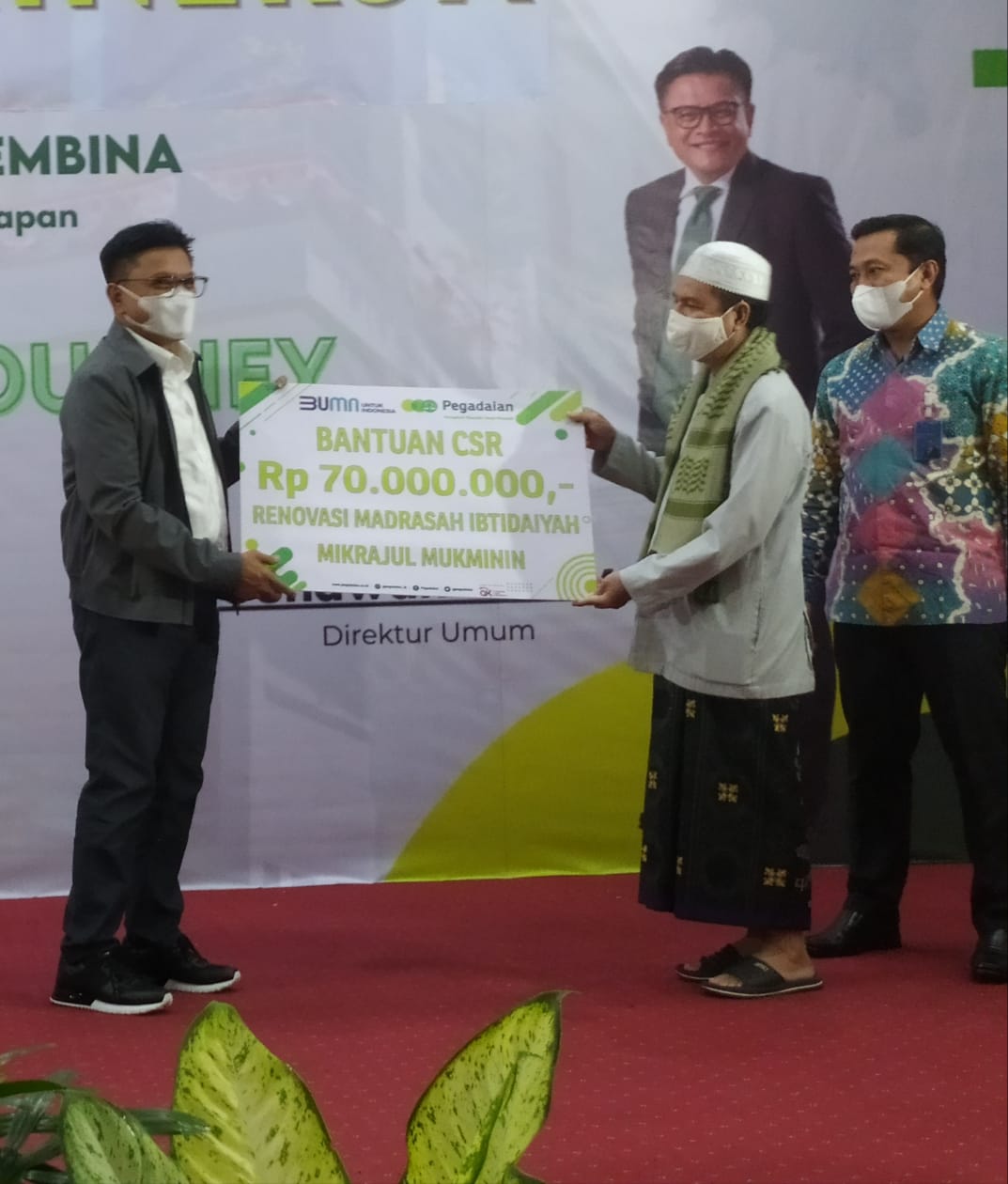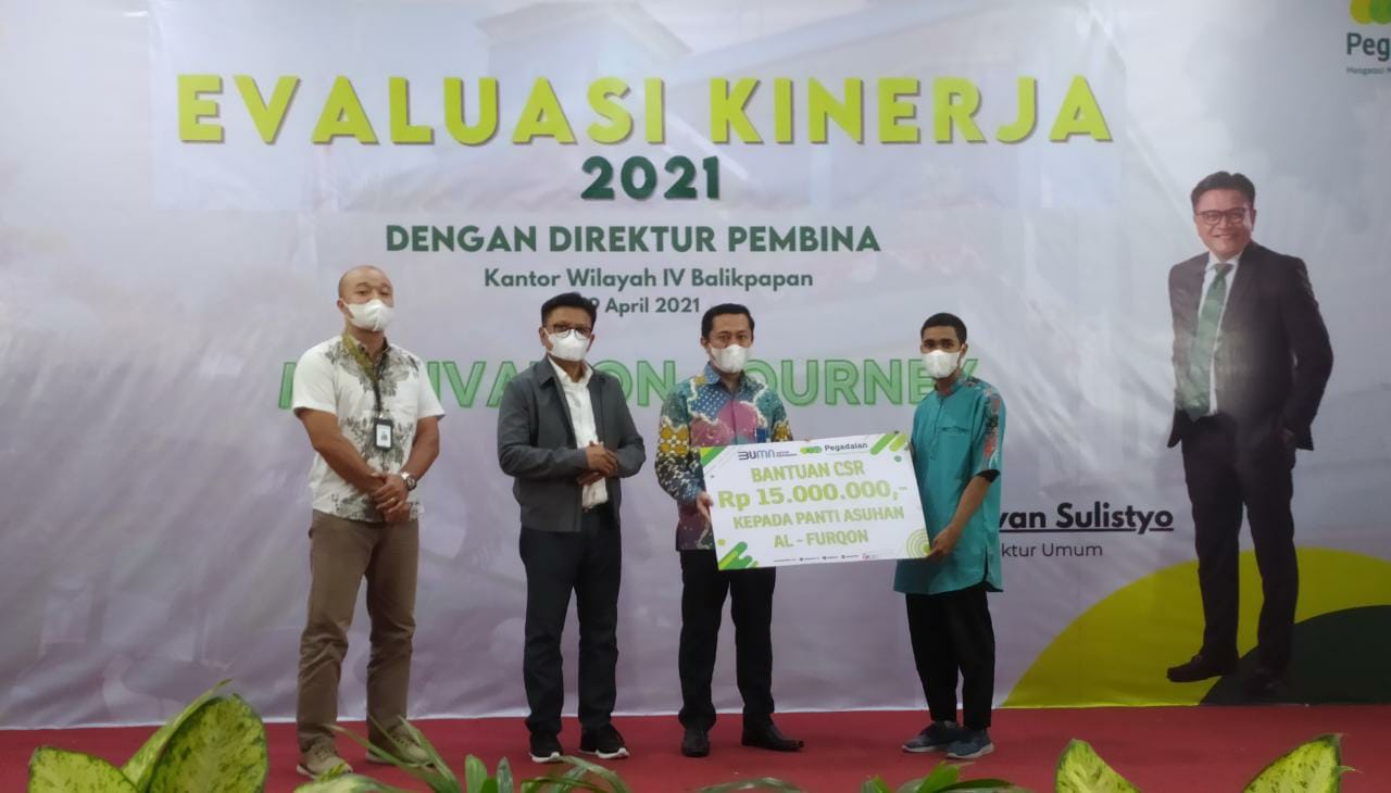 Bantuan diserahkan secara simbolis oleh Direktur Umum Pegadaian Gunawan Sulistyo kepada Kasi Pendidikan Agama Islam Kementerian Agama (Kemenag) Balikpapan H Muhammadiyah mewakili MI Mikrajul Mukminin. Bantuan berikutnya diserahkan kepada perwakilan Panti Asuhan Al Furqon dan Panti Asuhan Syamsul Ma’arif, di Langen Balikpapan Pegadaian Kanwil IV, Kamis (29/4/2021) sore.