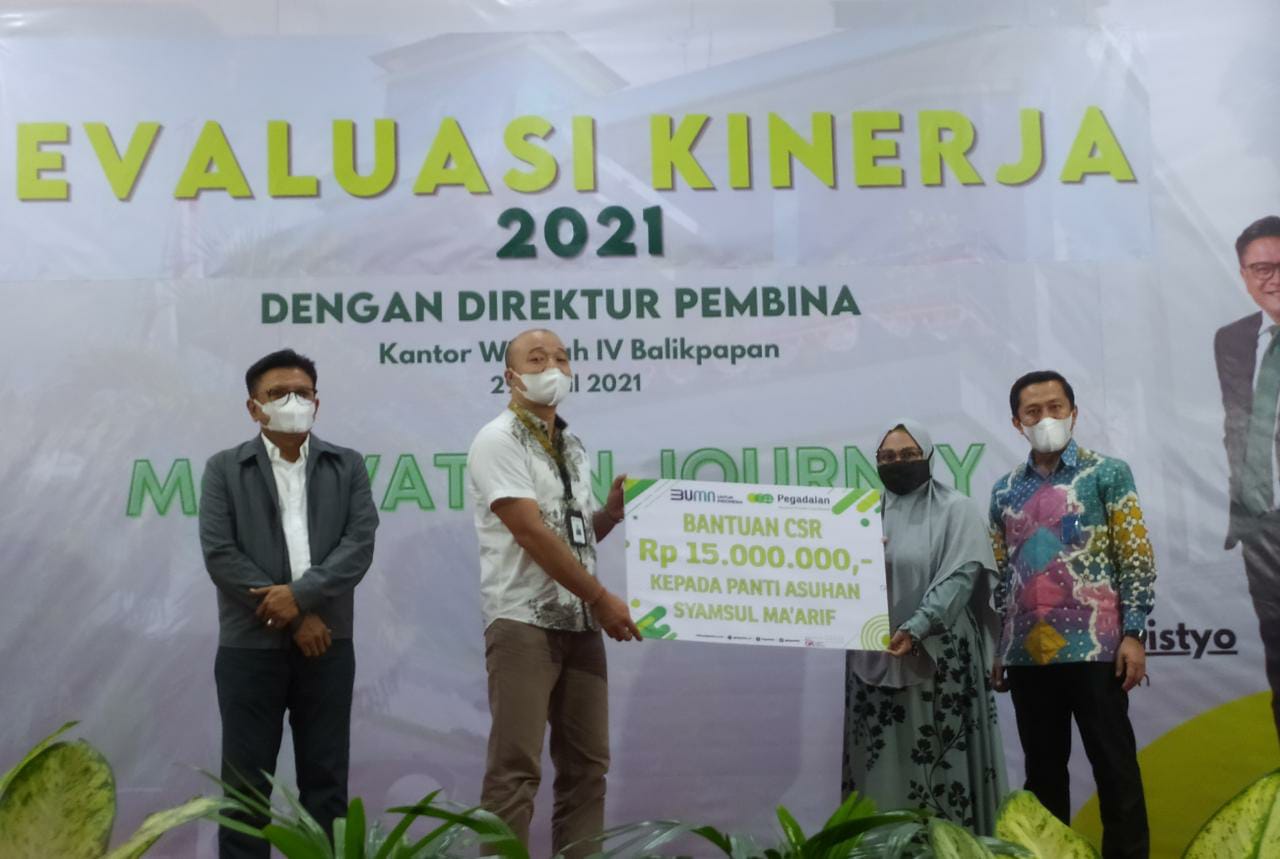 Terpisah, Kepala Bagian Kemitraan dan Bina Lingkungan Pegadaian Kanwil IV Balikpapan Rudianto menerangkan total bantuan yang disalurkan dalam kesempatan tersebut sebanyak Rp100 juta. Sementara di seluruh wilayah kerjanya meliputi Kalimantan, total bantuan yang disalurkan periode Ramadan 1442 H sebanyak Rp165 juta. “Sebelumnya kami memberikan bantuan sembako bagi masyarakat kurang mampu di Pontianak senilai Rp30 juta kemudian Rp35 juta untuk tiga masjid dan TPA (Taman Pendidikan Alquran, Red) di Balikpapan,” ucapnya.