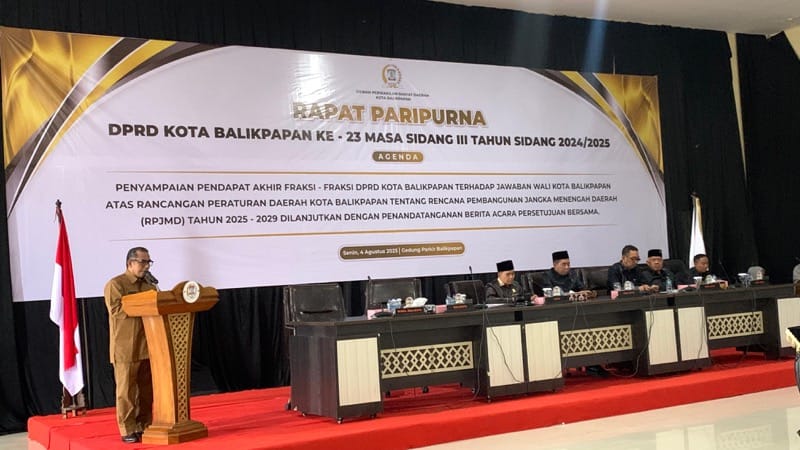 Hal ini disampaikan Sekretaris Daerah Kota Balikpapan H Muhaimin usai Rapat Paripurna DPRD Balikpapan dengan agenda Penyampaian Pandangan Fraksi terhadap Rancangan Peraturan Daerah (Raperda) Rencana Pembangunan Jangka Menengah Daerah (RPJMD) tahun 2025–2029 yang digelar di Gedung Parkir Klandasan, Senin (4/8/2025).