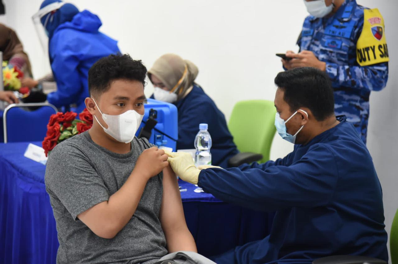 KOTAKU, BALIKPAPAN-Bandara Internasional Sultan Aji Muhammad Sulaiman (SAMS) Sepinggan Balikpapan berkolaborasi dengan para stakeholder vaksin warga sekitar, Selasa (10/8/2021). Sebanyak 50 dosis vaksin disiapkan dalam kegiatan yang digelar di Gedung Serba Guna PT Angkasa Pura I (Persero) Balikpapan.