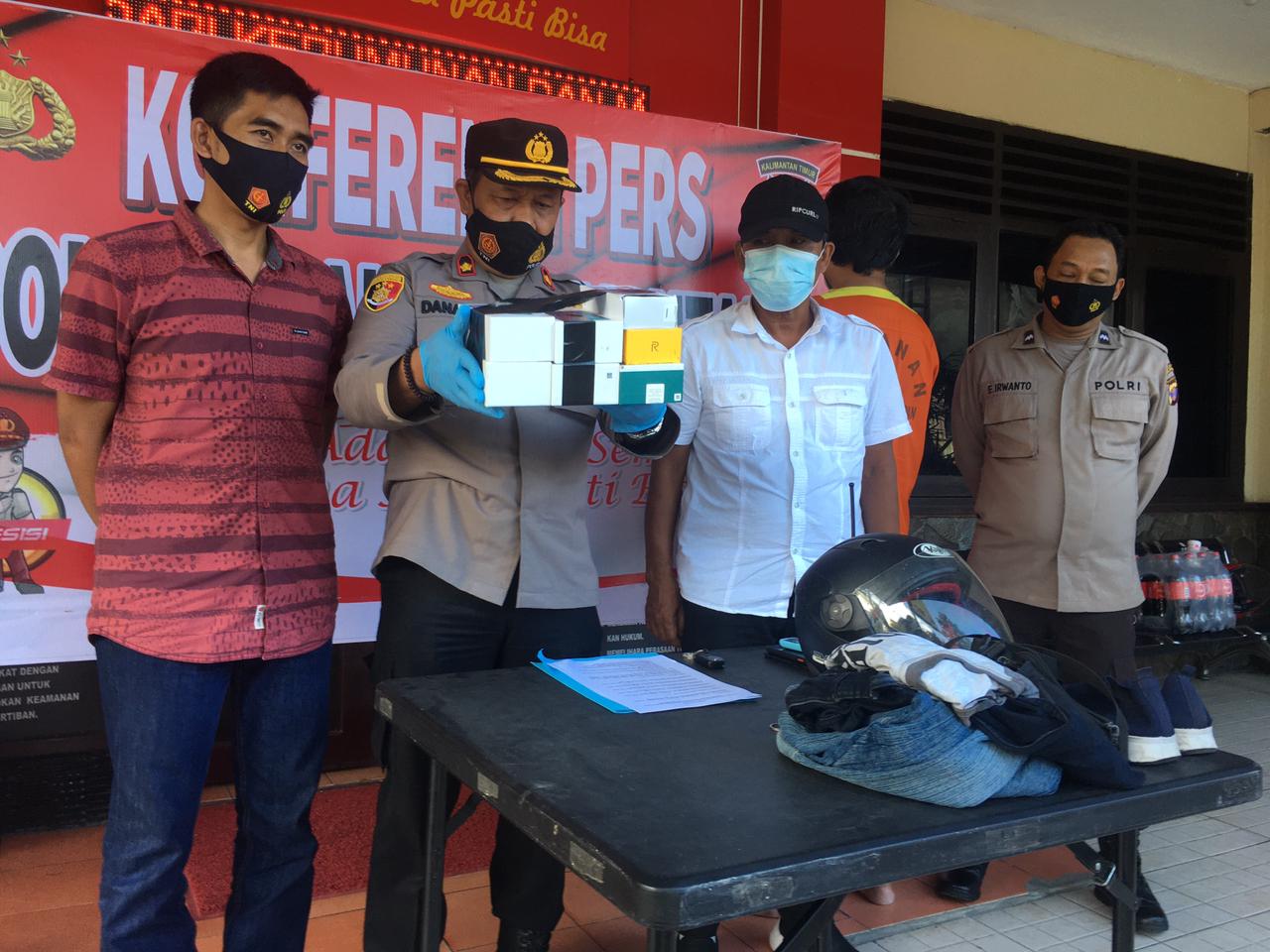 Selain tersangka, polisi juga mengamankan barang bukti HP hasil kejahatannya. Namun, dari lima tempat, itu hanya dua barang bukti yang berhasil disita. Selebihnya telah dijual tersangka.