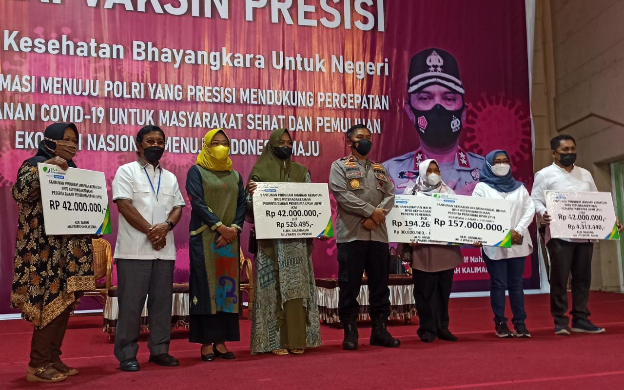 “Ada santunan yang diberikan kepada ahli waris berupa jaminan kematian dan kecelakaan kerja dan pekerja yang mengalami risiko sosial ekonomi,” jelas Deputi Direktur Wilayah Kalimantan BPJS Ketenagakerjaan Hj Rini Suryani saat ditemui saat pelaksanaan vaksinasi Polda Kaltim bersama BPJS Ketenagakerjaan di Balikpapan Sport Convention Center (BSCC/DOME), Jumat (17/9/2021).