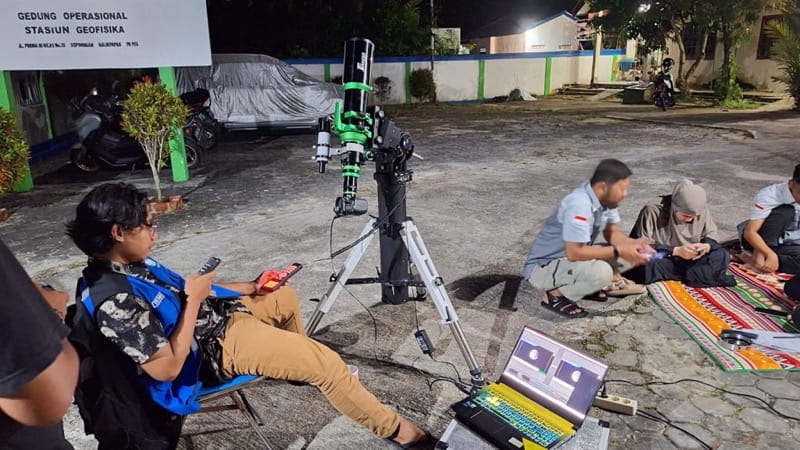 Pengamatan dilakukan dengan menggunakan teropong yang disambungkan ke kamera untuk disaksikan melalui laptop.