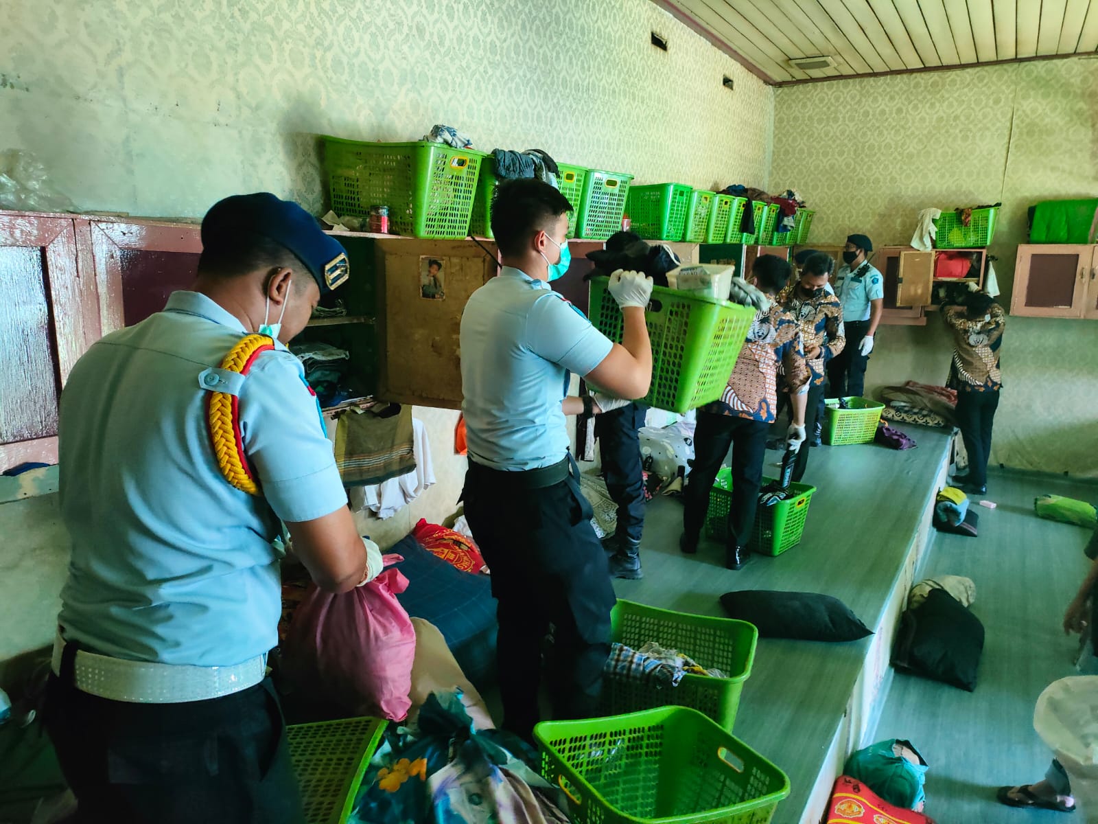 KOTAKU, BALIKPAPAN-Tim Satops Patnal Lapas Kelas IIA Balikpapan melakukan razia dan menggeledah kamar hunian warga binaan pemasyarakatan Kamis (13/1/2022) guna meminimalisir gangguan keamanan dalam lapas.