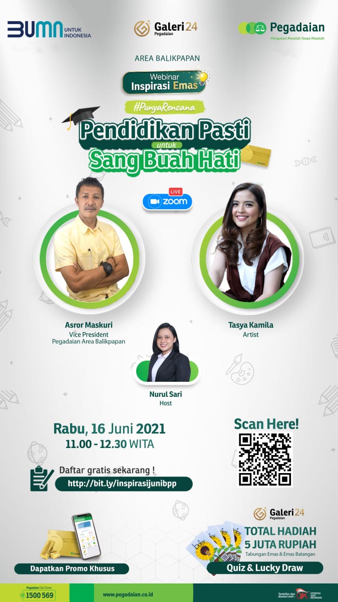PT Pegadaian (Persero) area Balikpapan punya solusi jitu. Semua akan dikupas tuntas di ajang seminar yang digelar secara virtual alias webinar, Rabu 16 Juni 2021 mulai pukul 11.00 Wita.