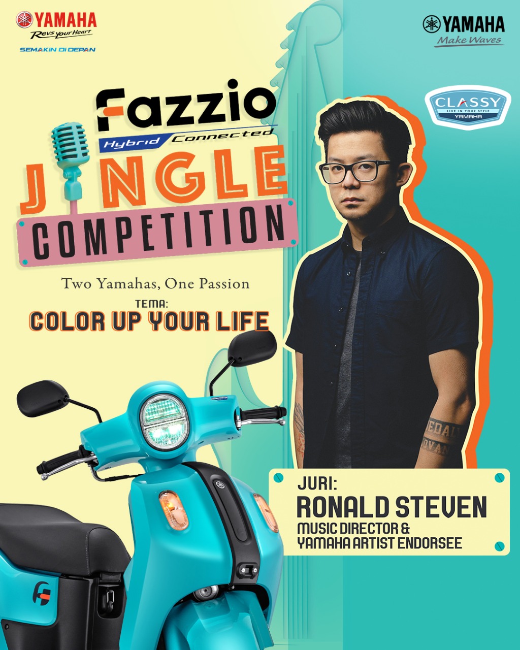 Bersama produk yang unggul di kelasnya, Fazzio Jingle Competition juga kembali menggandeng Ronald Steven sebagai juri utama yang unggul dan sudah berpengalaman dalam Jingle Competition yang diselenggarakan Yamaha. Seorang Yamaha Music Endorsee dan Music Director yang dikenal atas kesuksesannya sebagai salah seorang Music Director Asian Games 2018, Ronald Steven akan menilai setiap karya musik yang masuk hingga mendapatkan karya terbaik. Yamaha menyediakan total hadiah puluhan juta rupiah untuk hasil karya terbaik pilihan Yamaha dan juri. Selain itu Yamaha juga telah menyiapkan sejumlah hadiah menarik untuk apresiasi kepada karya anak bangsa melalui Spesial Awards.