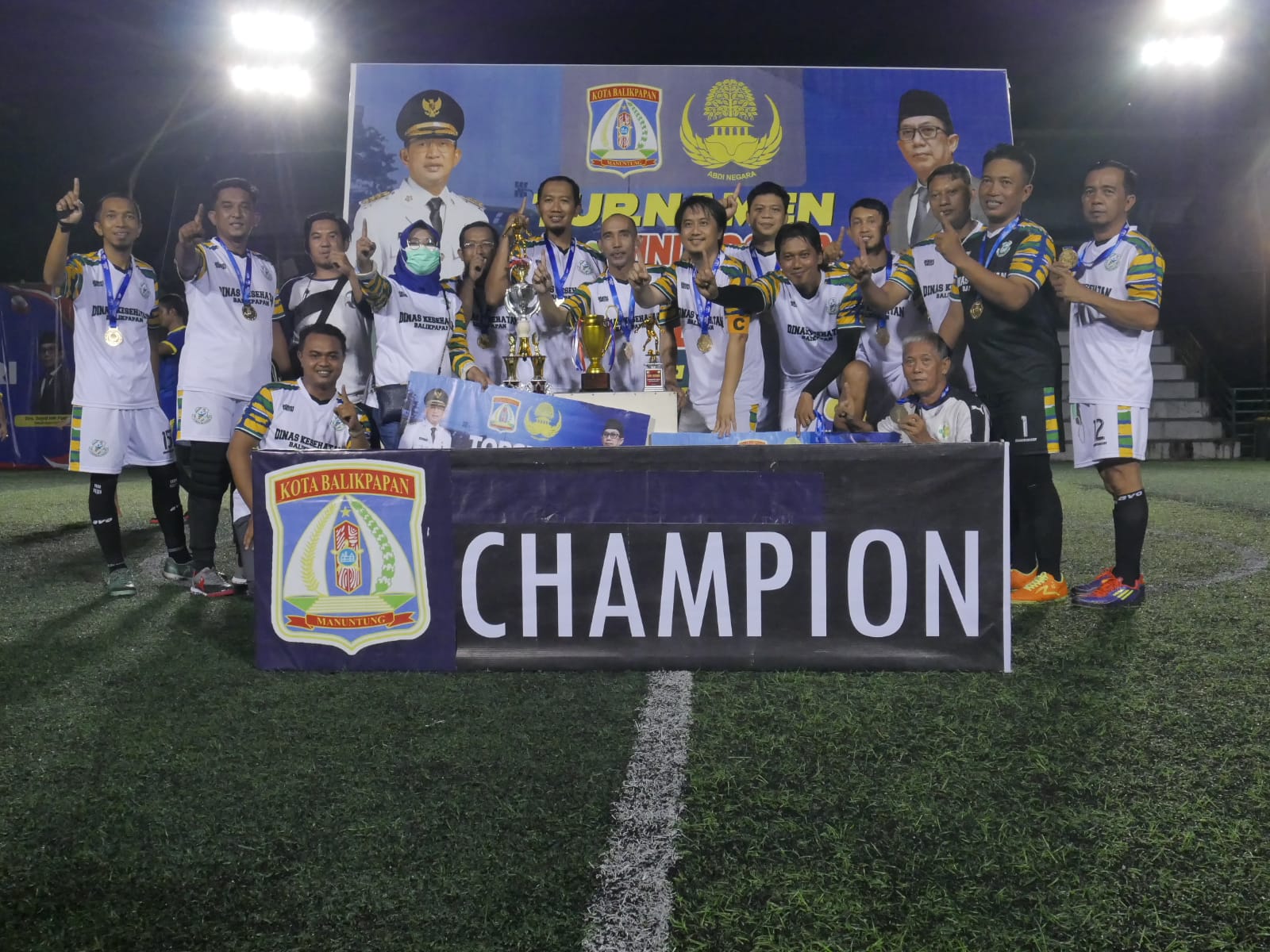 KOTAKU, BALIKPAPAN-Dinas Kesehatan Kota (DKK) Balikpapan berhasil meraih piala bergilir turnamen Futsal dalam rangka memperingati HUT le 50 Korpri setelah berhasil menundukan Dinas Pendidikan dan Kebudayaan (Disdikbud) Kota Balikpapan dalam babak adu pinalti dengan skor 3-2.