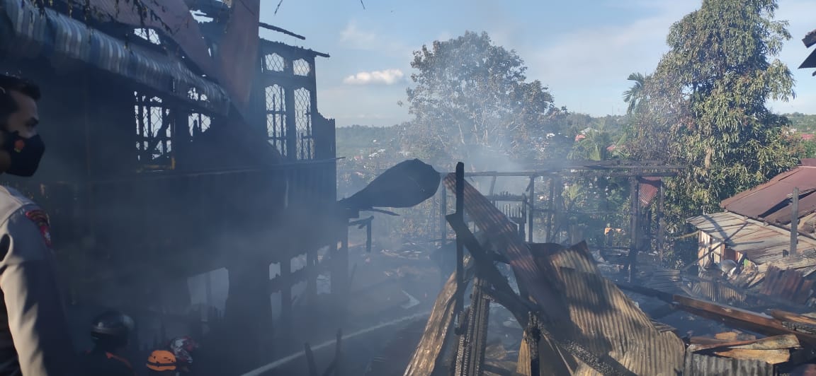 Diterangkan, laporan terjadinya kebakaran diterima sekira pukul 14.00 Wita. Rumah yang mayoritas berbahan dari kayu membuat api cepat merambat dan menimbulkan asap yang cukup tebal.