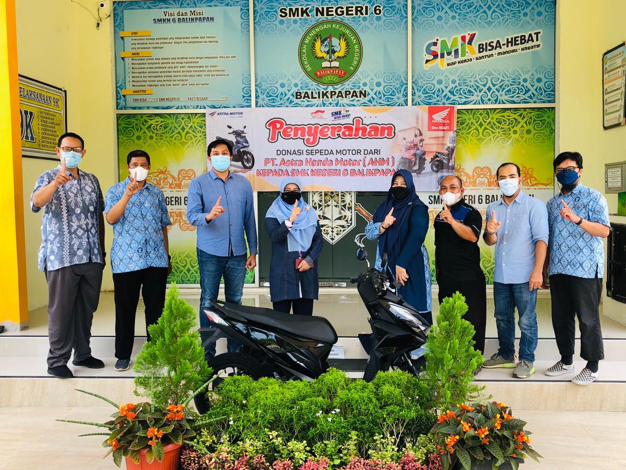 KOTAKU, BALIKPAPAN–PT Astra Honda Motor (AHM) melalui Satu HATI Education Program bersama main dealer Astra Motor Kaltim 1 telah melakukan kerja sama bidang pendidikan dengan mengadakan Kurikulum Teknik & Bisnis Sepeda Motor (TBSM) Astra Honda, ditandai dengan penandatanganan MoU Kurikulum Teknik & Bisnis Sepeda Motor Astra Honda dengan SMKN 6 Balikpapan sebagai Implementasi Program “Link & Match” Dunia Pendidikan dan Dunia Industri. Kali ini, PT Astra Honda Motor memberikan donasi sepeda motor, Jumat (25/3/2022).