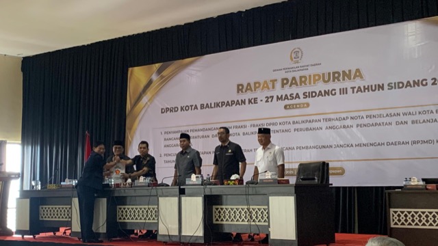 Rapat Paripurna digelar di Gedung Parkir Klandasan, Rabu (20/8/2025) dengan agenda Penyampaian Pemandangan Umum Fraksi-Fraksi terhadap Nota Penjelasan Wali Kota Balikpapan atas Rancangan Peraturan Daerah tentang Perubahan Anggaran Pendapatan dan Belanja Daerah (APBD) Tahun Anggaran 2025.