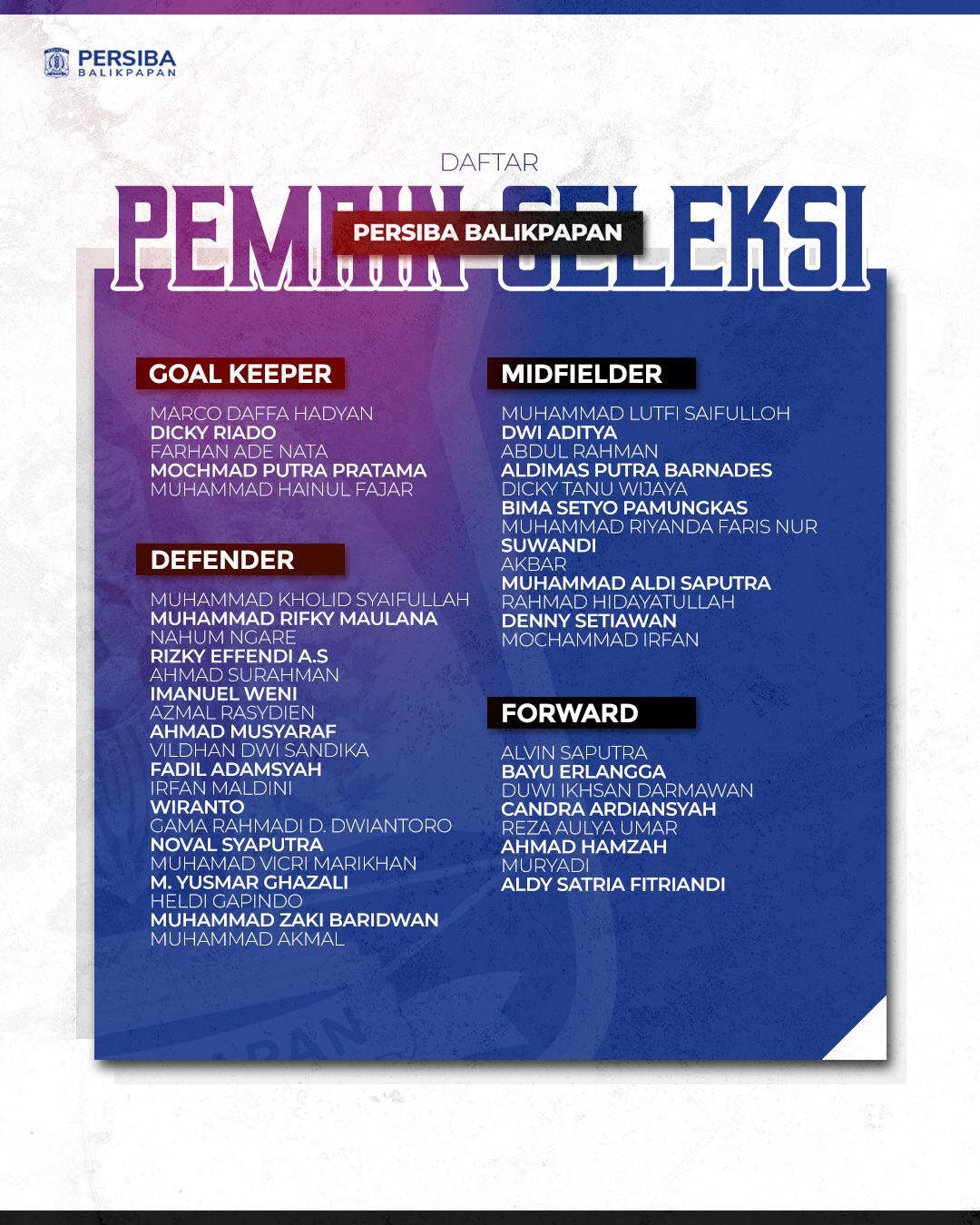 Sekertaris Persiba Balikpapan Rahmad Sanjaya menyampaikan untuk kuota yang diambil sesuai dengan kebutuhan tim. Pihaknya memastikan akan selektif dan obyektif untuk memilih pemain.