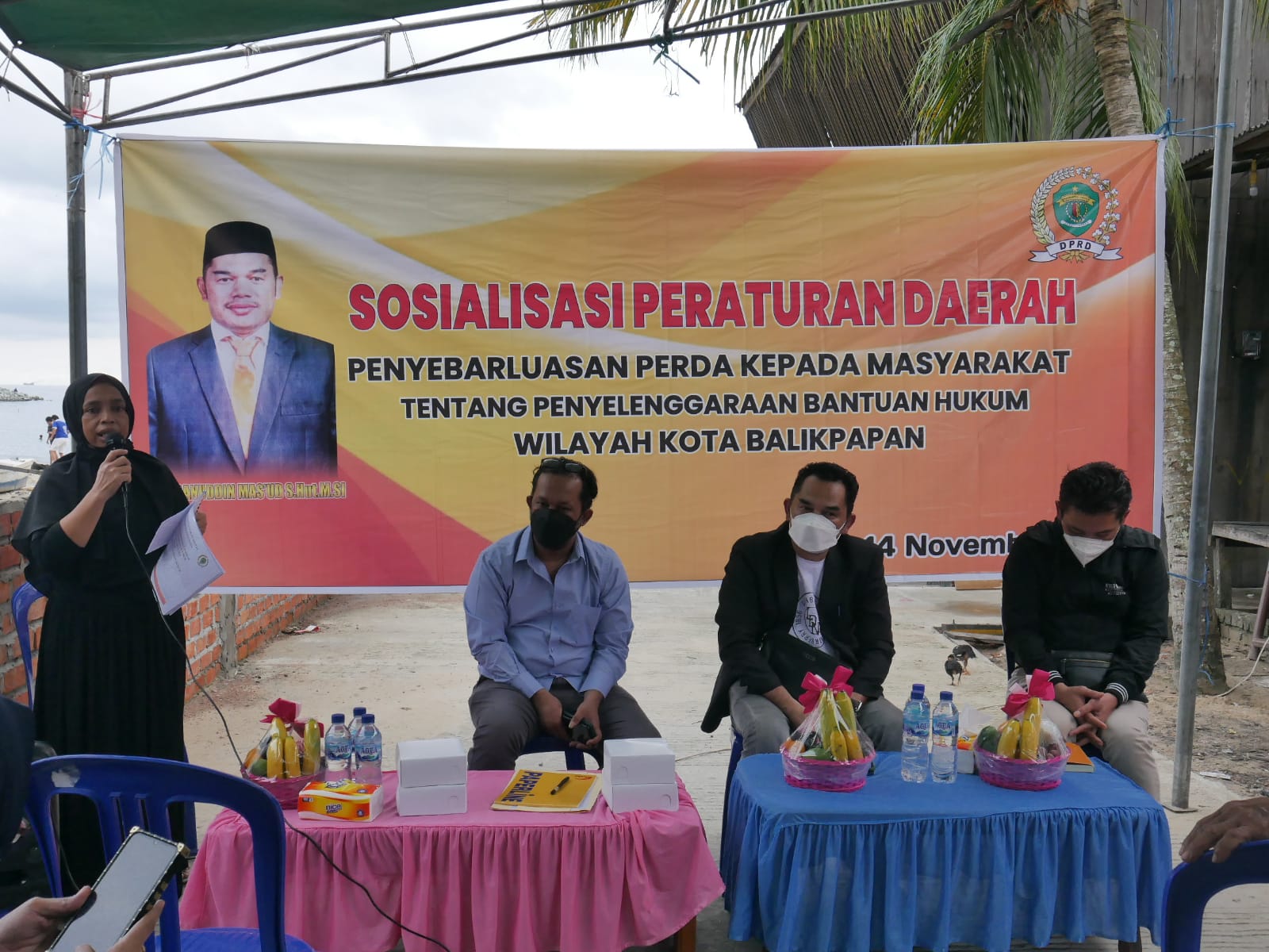 KOTAKU, BALIKPAPAN-Dalam rangka efektivitas pelaksanaan Peraturan Daerah penerapan Peraturan Daerah (Perda) No 5 tahun 2019 tentang Bantuan Hukum bagi Masyarakat Kurang Mampu, anggota DPRD Provinsi Kaltim H Hasanuddin Mas’ud gelar Sosialisasi Perda (Sosper) di Jalan Jenderal Sudirman RT 01 Kelurahan Damai Kota belakang Le Grandeur, Sabtu (13/11/2021).