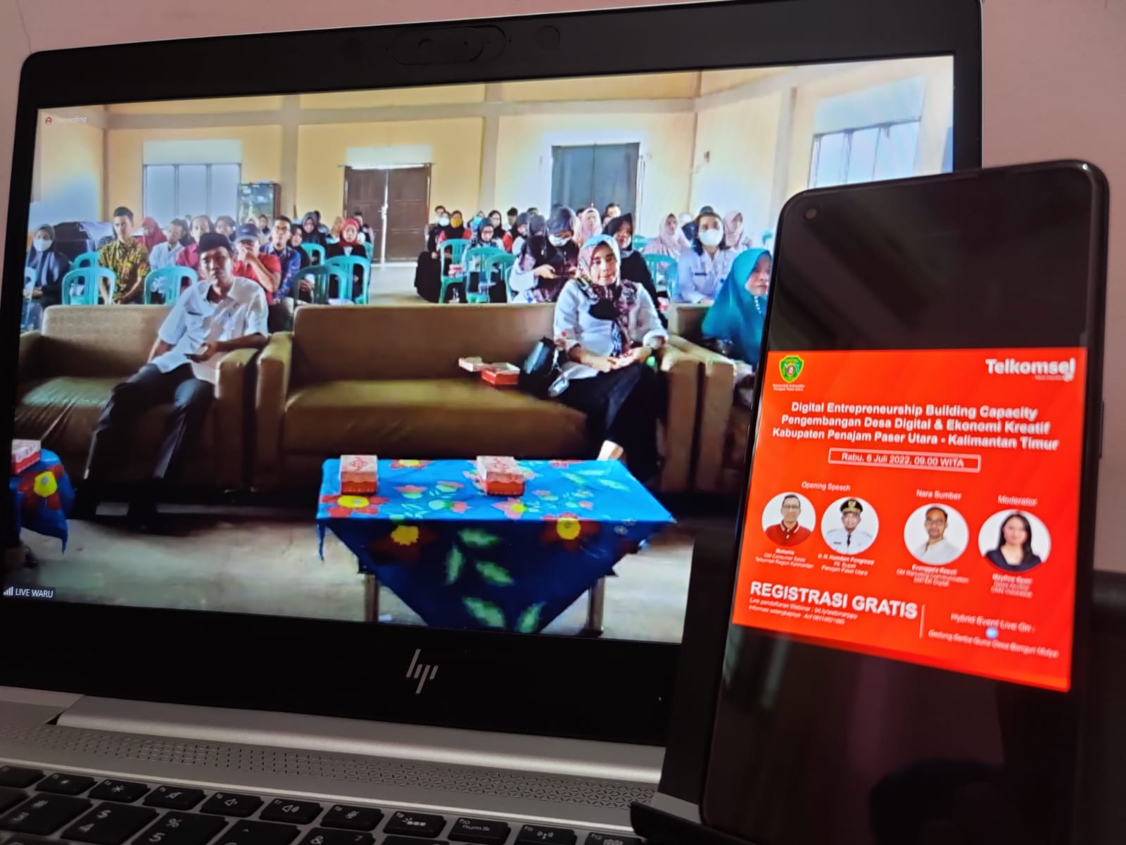 KOTAKU, PENAJAM-Dukung Pemerintah Kabupaten Penajam Paser Utara (PPU) dalam mengembangkan desa digital dan ekonomi kreatif, Telkomsel gelar Entrepreneurship Capacity Building secara hybrid online dan offline di Gedung Serba Guna Desa Bangun Mulya Kecamatan Waru, Rabu (6/7/2022). Dalam keterangan tertulis dijelaskan, General Manager (GM) Marketing Communication EMTEK Digital Evanggala Rasuli didapuk sebagai narasumber dipandu moderator News Anchor CNN Indonesia Mayfree Syari, diikuti oleh peserta yang terdiri Kelompok Informasi Masyarakat (KIM), pelaku ekonomi kreatif, serta warga desa di Kabupaten PPU.