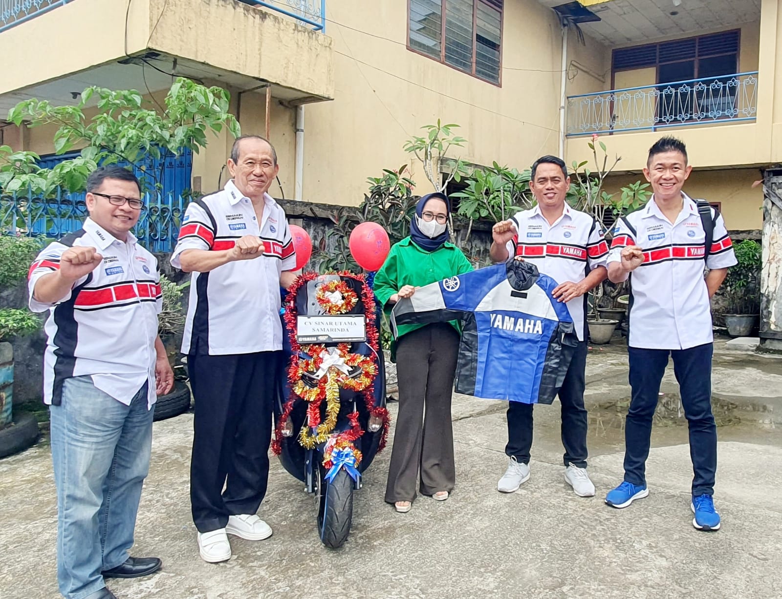 “Kami ikut berpartisipasi. Karena itu kami wajib mengapresiasi pelanggan. Kami kunjungi konsumen setia, yang melakukan transaksi hari ini ada beberapa tempat, seperti di Balikpapan dan Samarinda. Kebetulan ini di Samarinda, saya bersama jajaran Yamaha termasuk mas Tintan (perwakilan Yamaha Indonesia Motor Manufacturing (YIMM) Kaltim, Red) datang mengantar sekaligus memberikan kejutan kepada pelanggan setia untuk mengantarkan langsung motor yang dibelinya, dan kami juga memberikan gift ekslusif berupa jaket kulit Yamaha,” terang Iwan P Prasetya dalam keterangan tertulis yang disampaikan, Selasa (6/9/2022).
