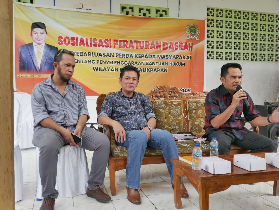 KOTAKU, BALIKPAPAN-Wakil rakyat Provinsi Kaltim H Hasanuddin Mas’ud gelar sosialisasi peraturan daerah (Sosper) bantuan hukum di daerah pemilihan (Dapil) yakni Balikpapan, Jumat (27/5/2022). Kali ini menyasar warga Jalan Soekarno Hatta Km 15 RT 26 Kampung Pati Kelurahan Karang Joang Balikpapan Utara.