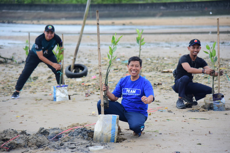 Penanaman mangrove ini menjadi wujud kolaborasi antara PT Angkasa Pura Indonesia dan masyarakat dalam menjaga ekosistem pesisir.