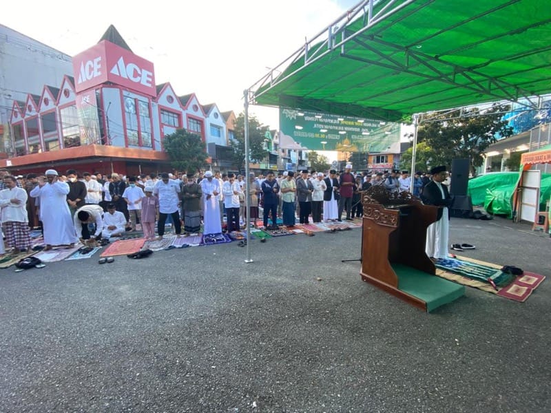 KOTAKU, BALIKPAPAN-Gema takbir berkumandang di halaman Bank Bukopin Balikpapan Permai, Jalan Jenderal Sudirman, Balikpapan Selatan, Jumat (21/4/2023).
