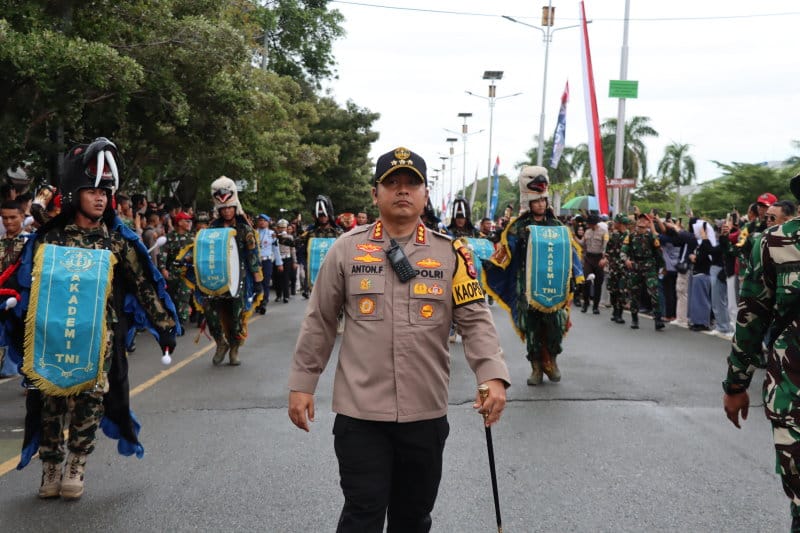 KOTAKU, BALIKPAPAN-Kapolresta Balikpapan Kombes Pol Anton Firmanto memimpin secara langsung pengamanan karnaval marching band, yang dilaksanakan para peserta Latihan Integrasi dan Kemitraan Taruna Wreda (Latsitarda) ke XLIV di Kota Balikpapan, Senin (6/5/2024).