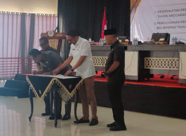 Kesepakatan perubahan KUA-PPAS 2025 ditandai dengan penandatanganan berita acara oleh pimpinan DPRD dan Sekretaris Daerah (Sekda) H Muhaimin yang mewakili Wali Kota Balikpapan H Rahmad Mas’ud.