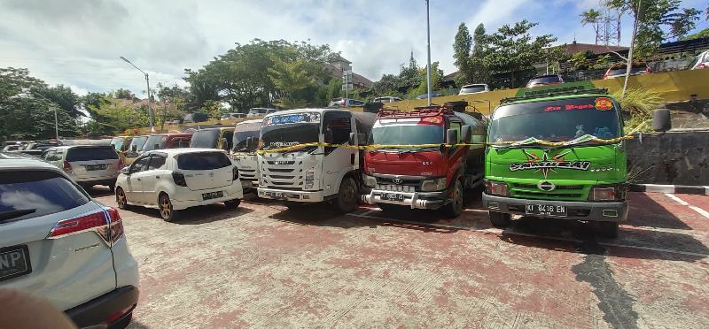 Selain itu polisi juga mengamankan sejumlah barang bukti di antaranya 12 unit truk tangki, lima bilah sajam jenis mandau, satu bilah badik, parang, mobil Avanza yang digunakan pelaku dan sejumlah dokumen lainnya.