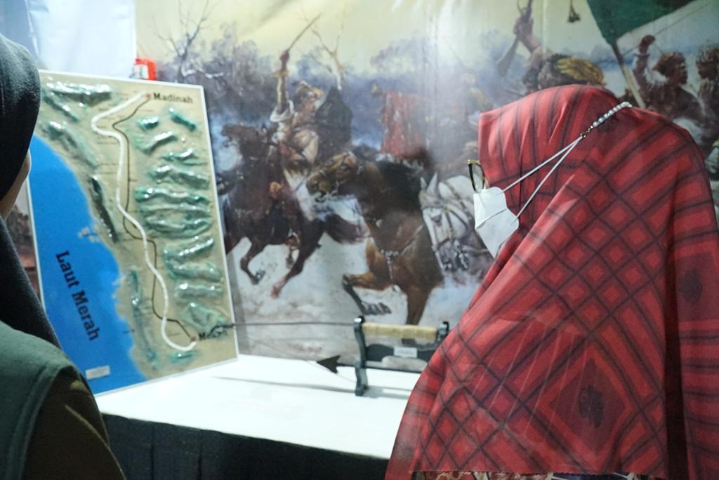 Tak hanya replika rumah, pameran itu juga menampilkan replika peninggalan Nabi Muhammad SAW di antaranya pedang-pedang, replika busur dan anak panah, replika serban, replika sandal dan rompah serta peta dua dimensi perjalanan hijrah Nabi Muhammad SAW.