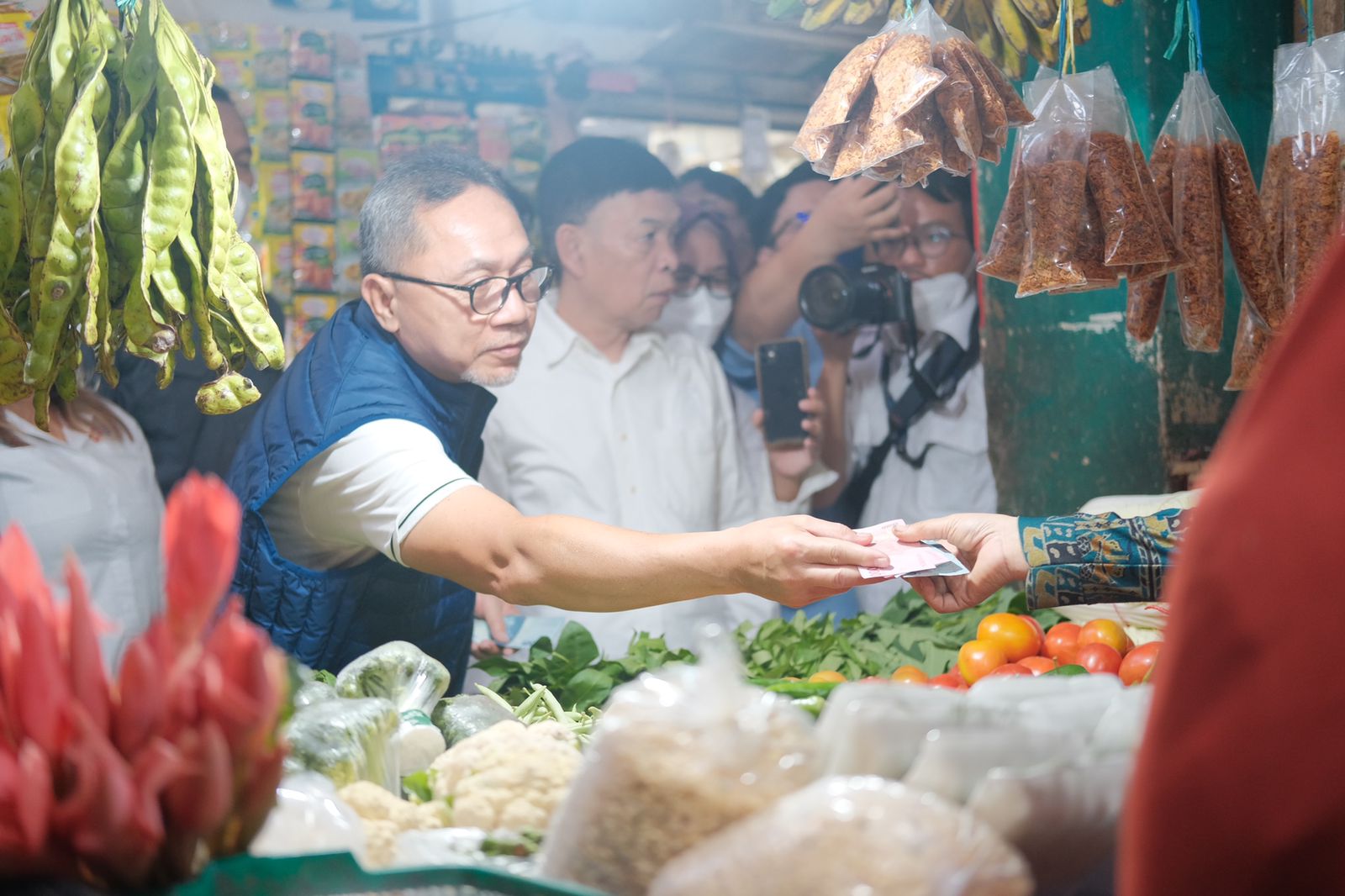 KOTAKU, BALIKPAPAN-Menteri Perdagangan (Mendag) RI Zulkifli Hasan beserta rombongan menyambangi pasar tradisional di Balikpapan yakni Pasar Kelandasan, Rabu (20/7/2022). Kedatangannya terkait harga bahan pokok yang ada di Kota Balikpapan.