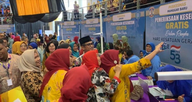 Dalam kesempatan itu, Wali Kota Balikpapan Rahmad Mas’ud turun langsung meninjau sebanyak 27 meja yang siap melayani pemeriksaan kesehatan gratis bagi masyarakat umum.