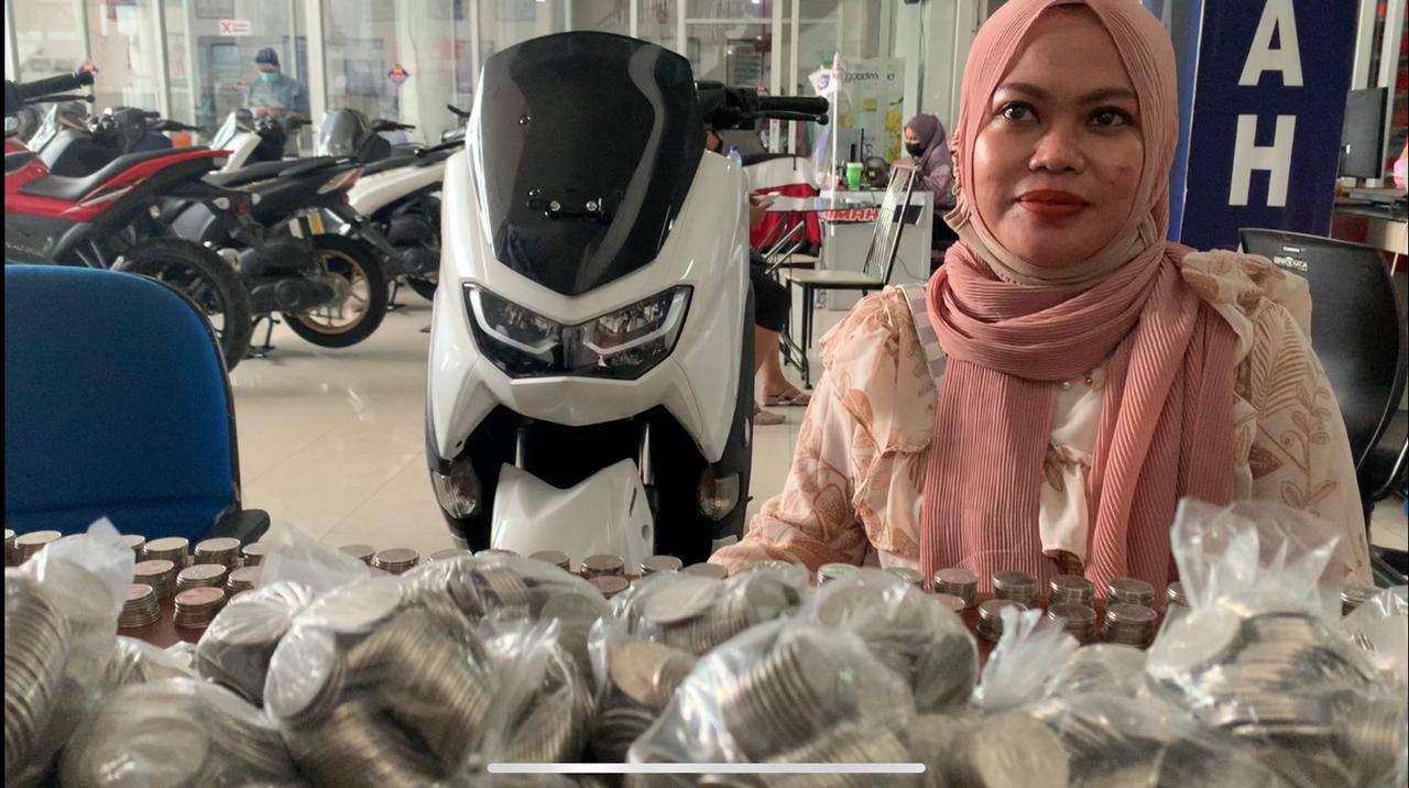 Dikatakan Hasnaini, uang koin tersebut merupakan tabungannya bersama sang suami yang telah dikumpulkan selama ini. Setelah dirasa cukup, keduanya pun membawa uang koin tersebut ditambah beberapa uang kertas untuk membeli Yamaha All New NMax.