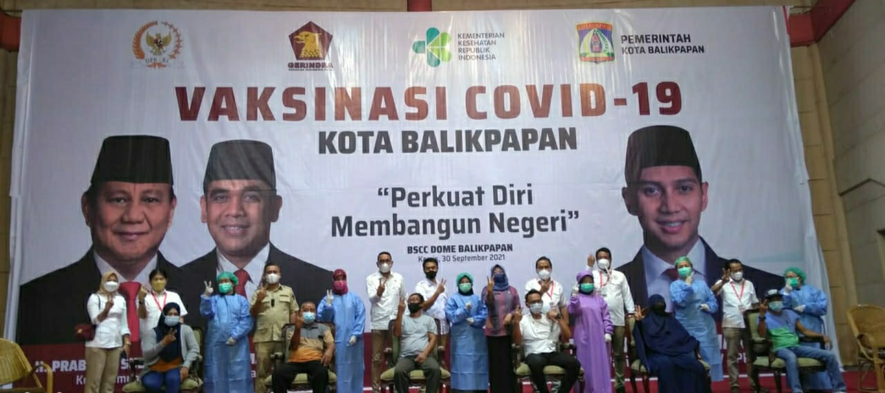 KOTAKU, BALIKPAPAN-Dewan Pimpinan Cabang (DPC) Partai Gerindra dukung Pemerintah Kota Balikpapan mewujudkan kekebalan kelompok yang ditarget 70 persen dengan menggelar vaksinasi di Balikpapan Sport and Convention Center (BSCC/DOME), Rabu (30/9/2021).