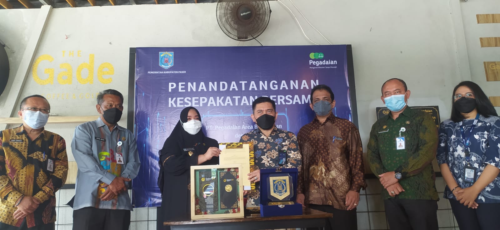 KOTAKU, BALIKPAPAN-Bangun sinergi, PT Pegadaian area Balikpapan gelar penandatanganan kerja sama dengan Pemerintah Kabupaten Paser di The Gade Coffee and Gold, Kamis (14/10/2021). Kerja sama ditandatangani oleh Vice President Pegadaian area Balikpapan Susatyo Pramana bersama Wakil Bupati Paser Sarifah Masitah Assegaf.