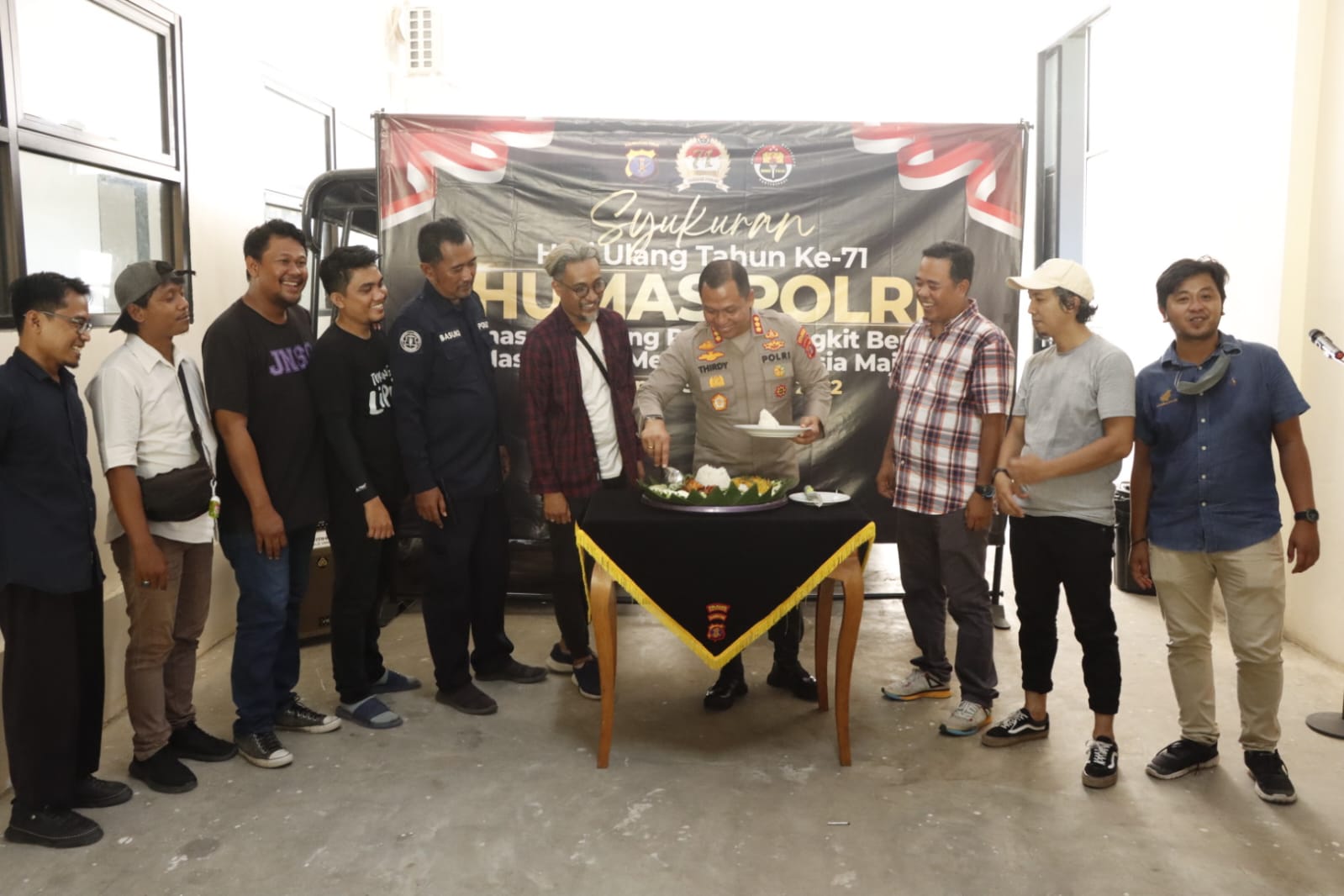 KOTAKU, BALIKPAPAN-Memperingati HUT ke-71 Humas Polri, Polresta Balikpapan menggelar syukuran. Kegiatan itu juga sekaligus meningkatkan silaturahmi antara anggota Polresta Balikpapan bersama insan pers di Balikpapan. Kegiatan silaturahmi dibuka dengan pemotongan tumpeng oleh Kapolresta Balikpapan Kombes Pol V Thirdy Hadmiarso yang diberikan kepada salah seorang Jurnalis Balikpapan.