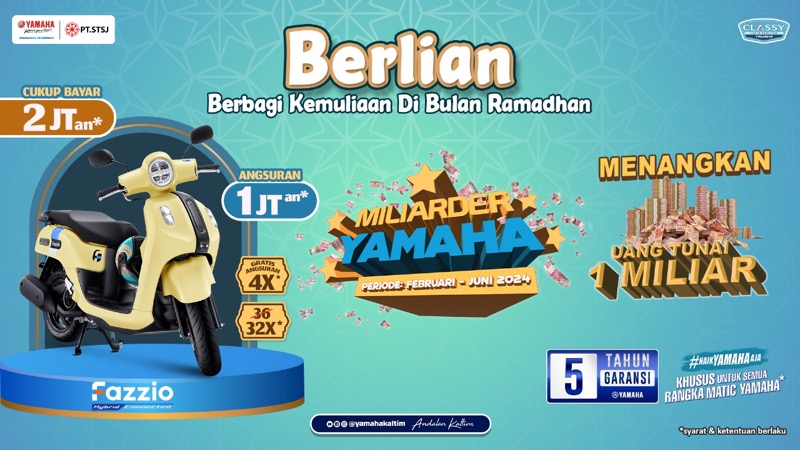 “Dengan promo Berlian alias Berbagi Kemuliaan Ramadan ini, kami memberikan kemudahan masyarakat untuk memiliki Yamaha Fazzio,” ungkap Asisten Manajer PT STSJ area Kaltim, Efendy Ariadi, Kamis (21/3/2024).