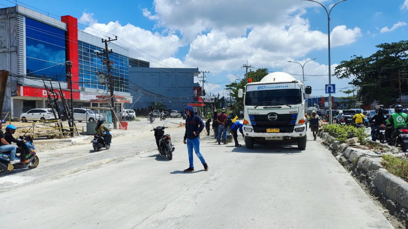 “Kecuali itu mangkrak. Sekarang, Alhamdulillah sudah bisa dilewati dua jalur. Adapun sisa-sisa sedikit, mungkin ada terkendala dengan alat.