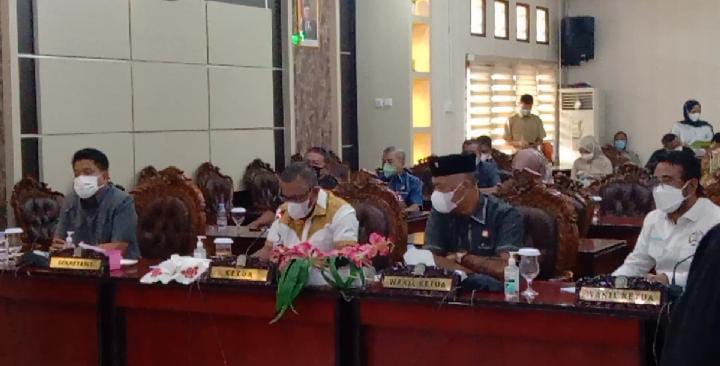 Dengan agenda penyampaian jawaban wali kota terhadap pemandangan umum Fraksi-Fraksi DPRD atas Rancangan Peraturan Daerah Kota Balikpapan tentang Anggaran Pendapatan Belanja Daerah (APBD) tahun 2022 melalui video conference di Ruang Rapat Gabungan DPRD Balikpapan.
