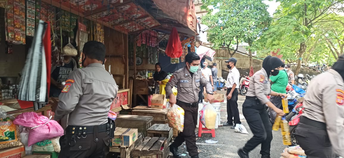 KOTAKU, BALIKPAPAN-Tim gabungan menertibkan ratusan pedagang kaki lima (PKL) yang berjualan di halaman Pasar Pandansari termasuk Jalan Pandan Wangi sebagai jalan poros, Rabu (22/6/2021). Kegiatan penertiban tersebut menuai protes para pedagang.