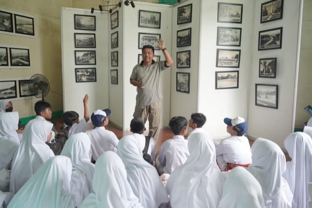 Relawan Rumah Cagar Budaya Dahor Rudiansjah J.A. mengaku senang dan menyambut baik kunjungan para siswa.