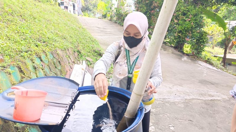 Novia menjelaskan, bubuk ini harus ditaburkan di tempat atau wadah penampung air hujan.