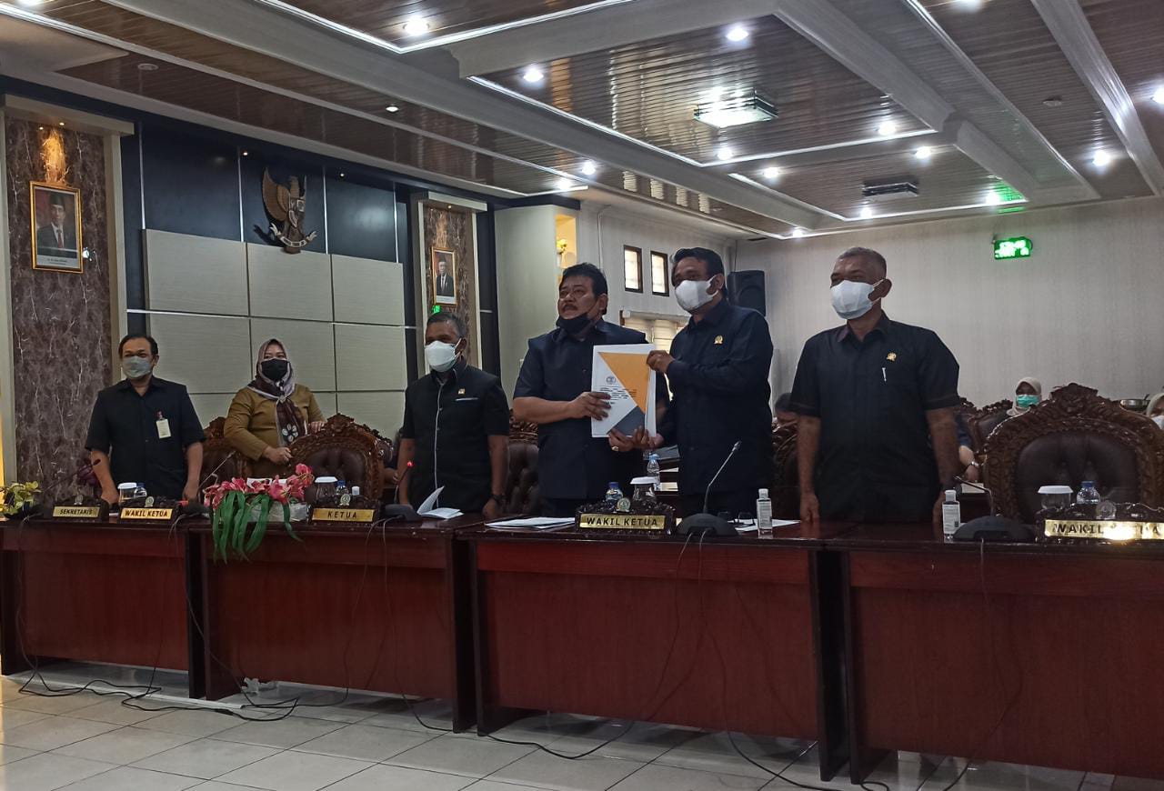 KOTAKU, BALIKPAPAN-Laporan hasil kerja dan rekomendasi Panitia Khusus (Pansus) Rencana Pembangunan Jangka Menengah Daerah (RPJMD) Kota Balikpapan tahun 2021-2026 dan Penandatanganan Nota Kesepahaman yang disampaikan dalam Rapat Paripurna Dewan Perwakilan Rakyat Daerah (DPRD) Kota Balikpapan yang dipimpin oleh Ketua DPRD Balikpapan H Abdulloh.