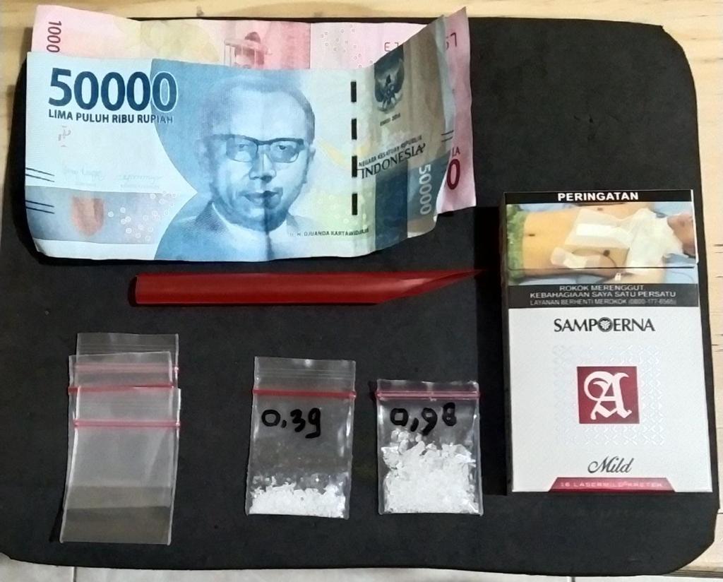 Dalam kamar itu, terdapat seorang pria yang berinisial HFR. Kemudian dilakukan pemeriksaan barang serta pakaian. Hasilnya, didapati sebuah kotak rokok yang berisikan dua plastik flip bening berisikan sabu-sabu serta satu buah sedotan sendok takar sabu, dan tiga lembar plastik flip bening kosong, kemudian uang tunai Rp150 ribu.