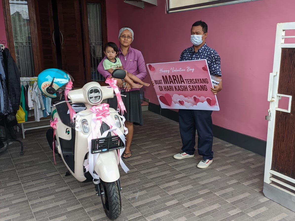 Memberikan kejutan kepada pasangan tidak saja dilakukan oleh muda-mudi tapi untuk semua kalangan usia. Seperti Edo (37 tahun) yang memberikan kejutan kepada istrinya berupa satu unit Yamaha Fazzio Neo berwarna Beige. Menariknya, Edo meminta konsep pengirimannya luar biasa dengan tambahan hiasan dan boneka besar.
