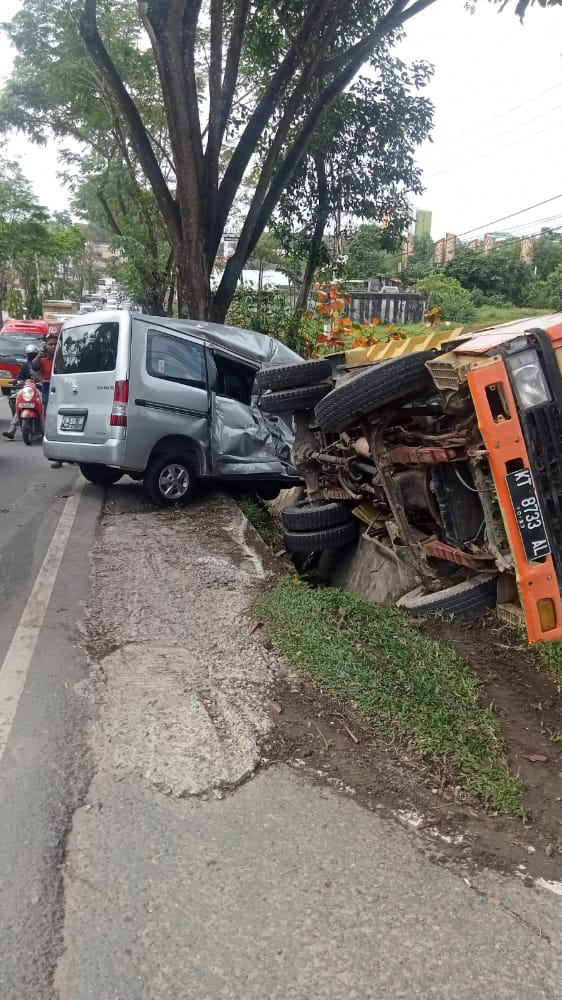 Namun sesampainya di area tanjakan, truk yang dikemudikan Maulana tidak kuat menanjak.