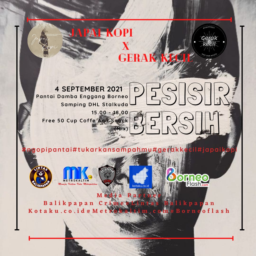 KOTAKU, BALIKPAPAN-Peduli dengan kondisi Pantai Damba, Kelurahan Damai Baru, Balikpapan Selatan yang dipenuhi sampah, Coffee Shop Japai Kopi akan menggelar aksi bersih pantai bertajuk Gerak Kecilz Sabtu 4 September 2021, besok. Berkolaborasi dengan milenial, Bank Sampah Kota Hijau, Eco Enzim juga Dinas Lingkungan Hidup (DLH) Kota Balikpapan.