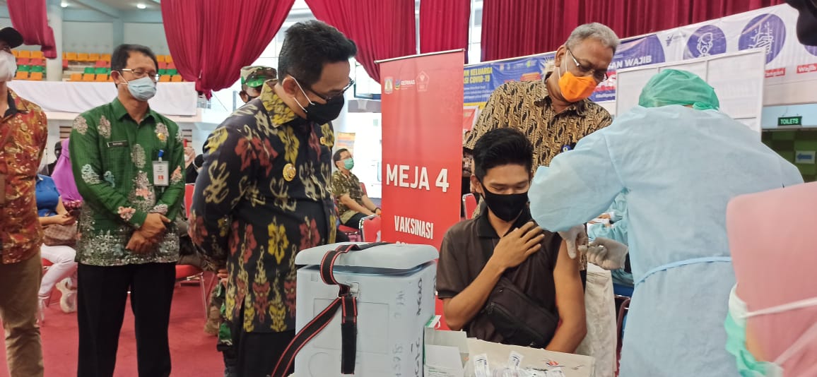 KOTAKU, BALIKPAPAN-Wali Kota Balikpapan H Rahmad Mas’ud untuk kali pertama sejak menjabat, meninjau pelaksanaan vaksinasi bagi tenaga guru termasuk warga lanjut usia (lansia) yang berlangsung di Balikpapan Sport Center Convention (BSCC/DOME), Kamis (3/6/2021).
