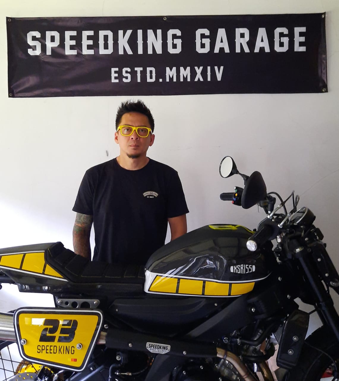 Custom ini memiliki geometri yang mendukung untuk sebuah konsep Flat Tracker, membuat Susanto Gunawan Speedking Garage memilih konsep ini pada custom Yamaha XSR 155 nya. Modifikasinya tampak pada knalpot dengan model up swept, penggunaan side plate dan ban dual purpose dengan velg jari-jari adalah beberapa parts yang diaplikasikan oleh Speedking Garage untuk memberikan karakter “Flat Tracker” pada Yamaha XSR 155. Bodi custom menggunakan bahan dengan material carbon fiber yang mendukung aktivitas flat track. (*)