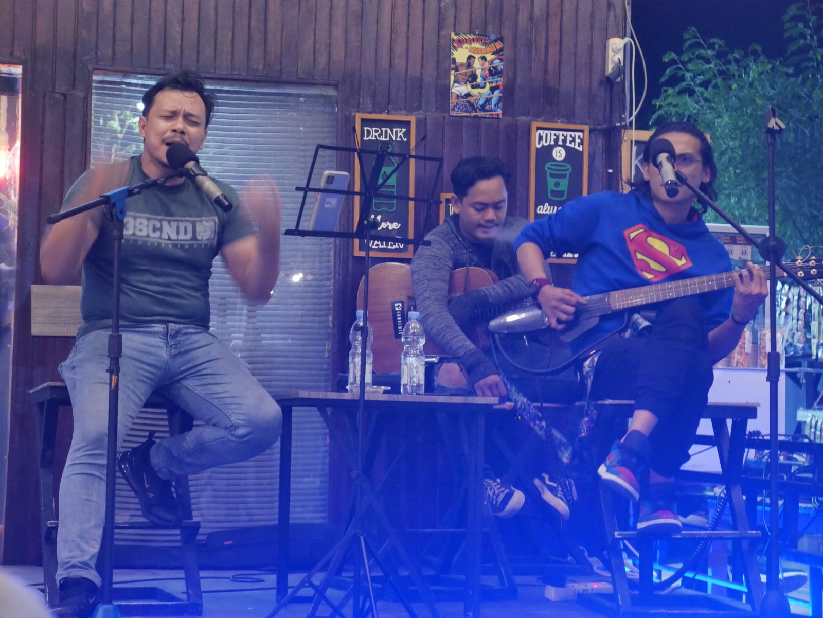 Ya, konsep itu membuat pengunjung betah berlama-lama. Apalagi dia area outdor, para pencinta kopi ditemani dengan live akustik dari sang owner langsung, yakni Awan Langit dan partner.